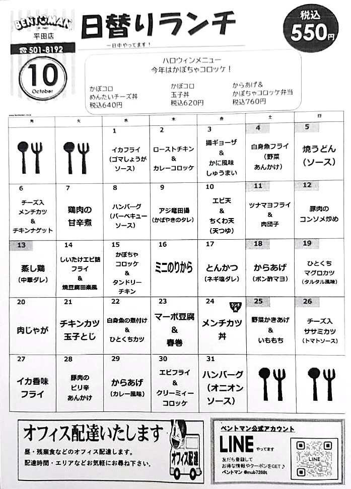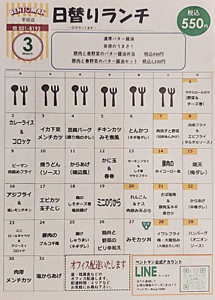 平田店 日替り献立表