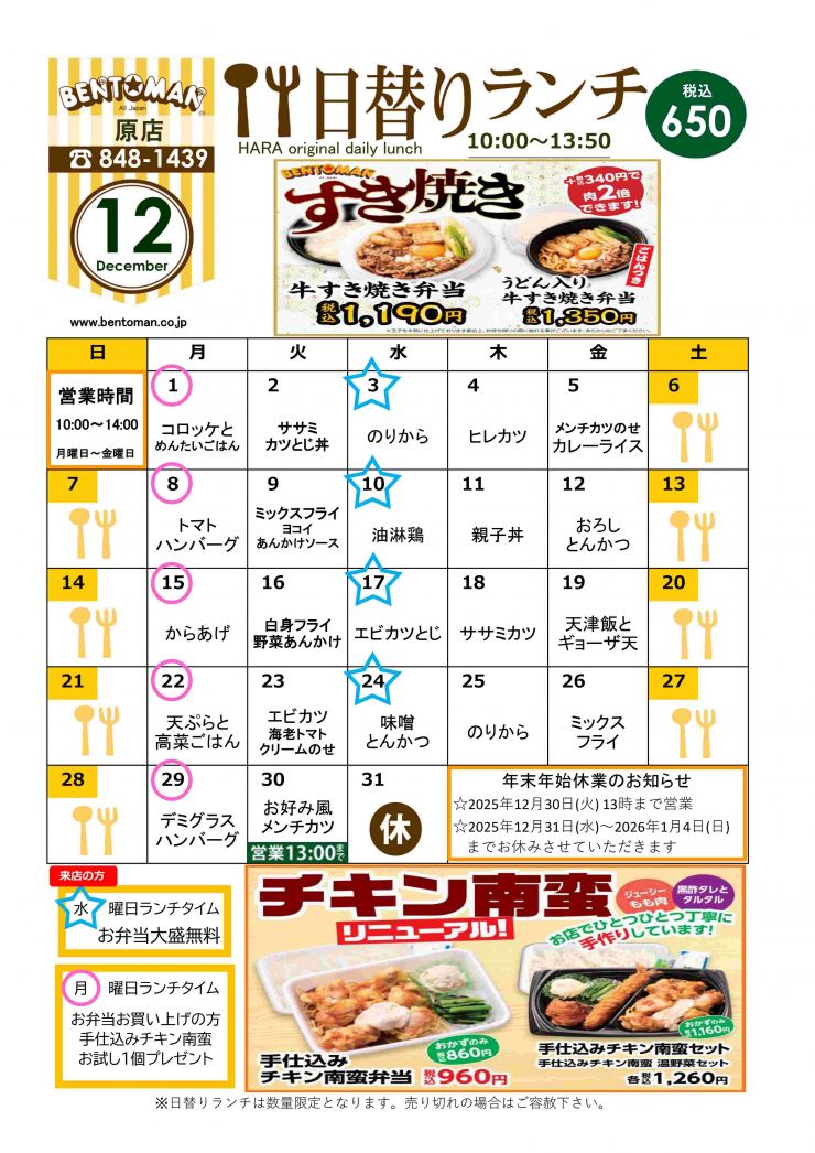 原店 日替りメニュー
